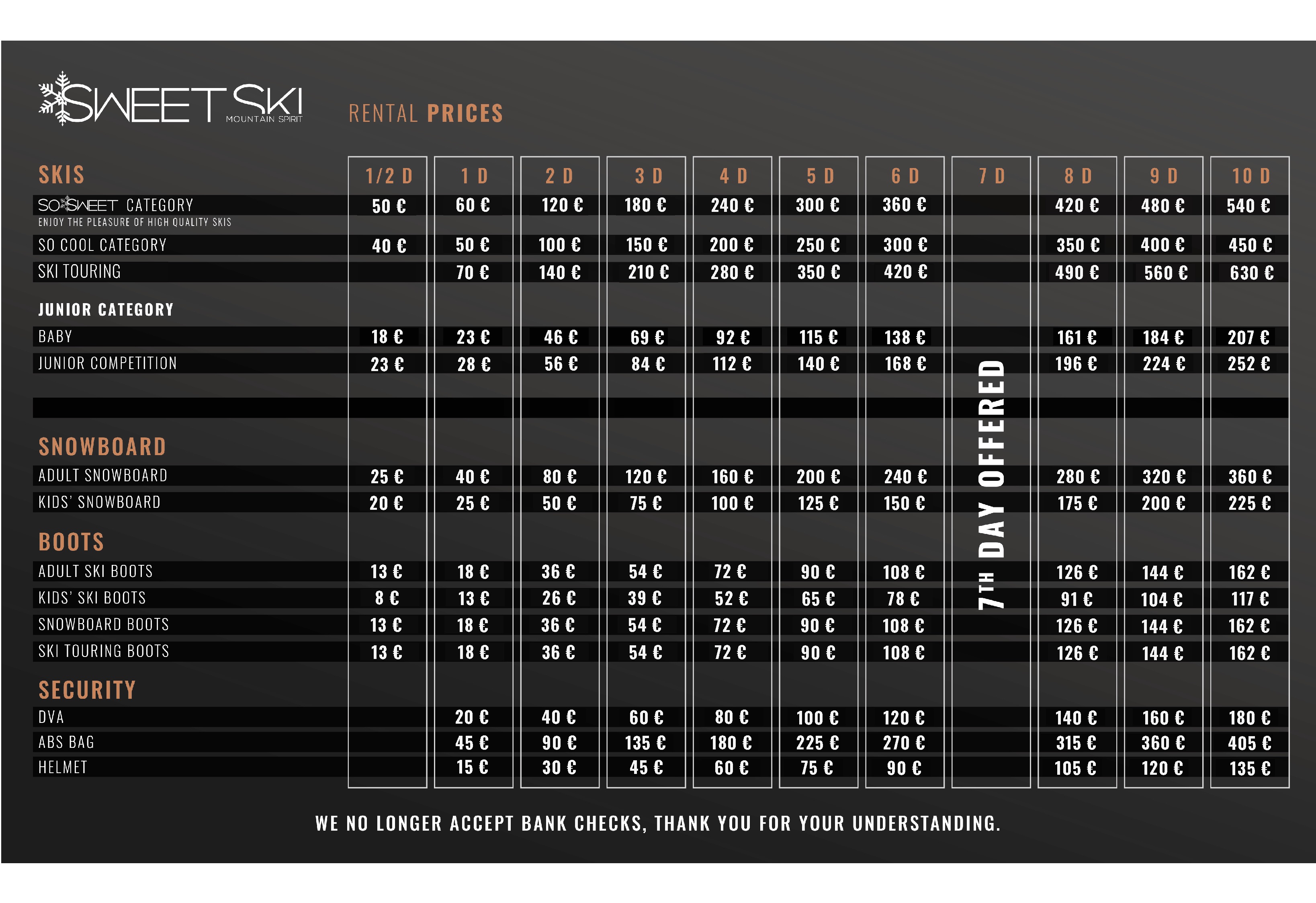 Sweet Ski offers several ranges of high quality equipment for hire for the whole family and all disciplines: downhill skiing, ski touring, snowboarding... Book your equipment online before your arrival to benefit from special rates!